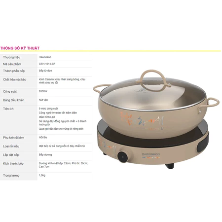 Bếp Điện Từ Đơn Hàn QuốcHawonkoo CEH-101-I-GR tặng kèm nồi lẩu siêu sang.