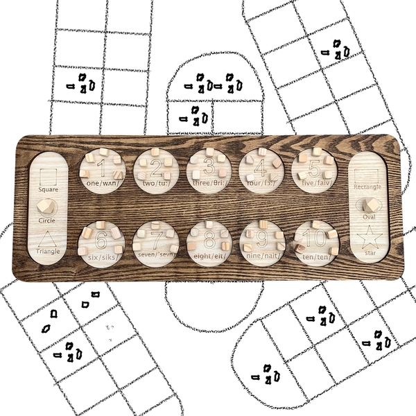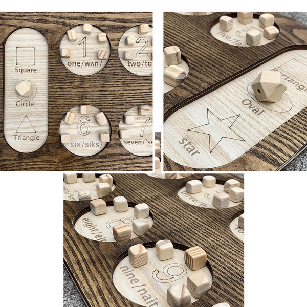 – Mặt bảng được khắc các số và hình khối bằng tiếng Anh, cho trẻ có thể vừa chơi vừa học