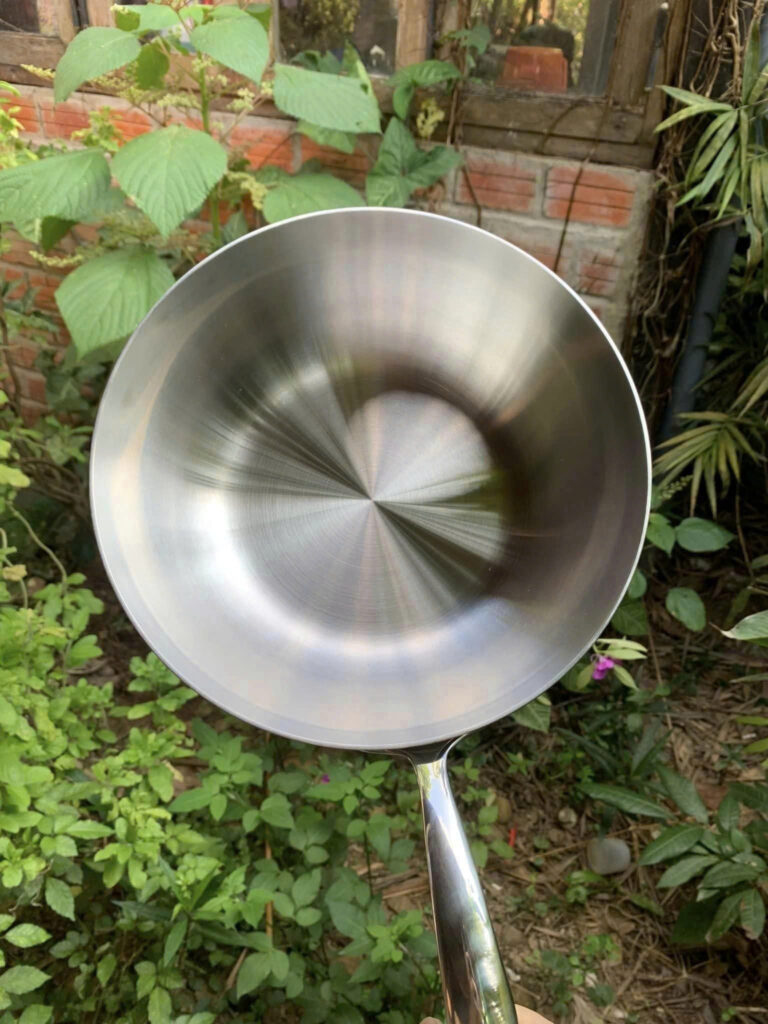 – Hạn chế dùng các vật cứng, sắc nhọn như búi rửa bằng sắt để cọ rửa, trà sát lên bề mặt bên ngoài và lòng nồi chảo, làm mất độ sáng bóng của inox.