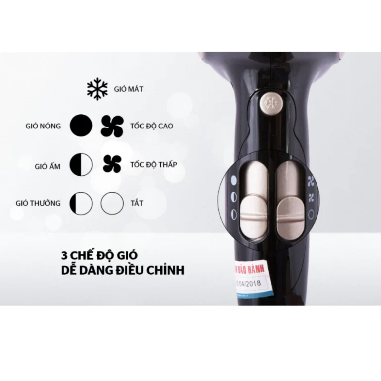 Máy có 2 tốc độ và 2 mức nhiệt độ, 1 chế độ sấy mát, tùy chỉnh linh hoạt.